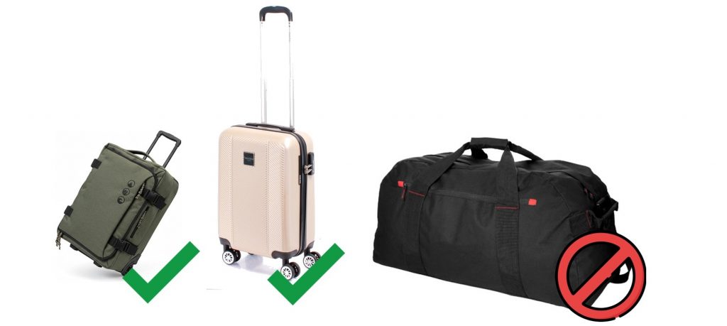 Pour le sac/valise, des roulettes sont indispensables pour le transport dans les gares. L’idéal est ce que l’on appelle une valise cabine. L’élève aura aussi un sac à dos en plus de son sac/valise.